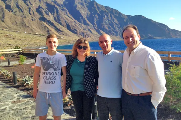 El Viceconsejero de Turismo del Gobierno de Canarias, Ricardo Fernández de la Puente y la directora gerente de Promotur, María Méndez, han dado la bienvenida y saludado a Sinan y Avendrían Idrizi, los ganadores belgas del concurso ‘Vuelve a Brillar’, que están disfrutando de la isla de El Hierro el 2 de noviembre próximo. El concurso se ha desarrollado a través de la cuenta de Turismo de Canarias en Facebook o de medios digitales en diversos países europeos y en España, durante el pasado verano.