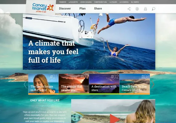 En todas las webs, navegables desde cualquier tipo de dispositivo, también son protagonistas las imágenes. Más de 2.000 fotografías, ilustraciones y vídeos se muestran junto a la información que se ofrece al viajero y que pretende acompañarle en todo momento: cuando busca inspiración para sus vacaciones y en el momento de planificar los detalles del viaje, también mientras está de vacaciones en las Islas e, incluso, una vez ha regresado, cuando organiza y comparte sus recuerdos.