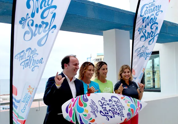 Las hermanas Ruano son las madrinas de esta nueva plataforma de ‘Viento y olas’, que pretende atraer a turistas cuya motivación principal es practicar el surf, windsurf o kitesurf y, a la vez, contribuirá a reforzar el concepto de nuevo sol y playa de las Islas Canarias. El viceconsejero de Turismo del Gobierno de Canarias, Ricardo Fernández de la Puente, y la gerente de Turismo de Canarias, María Méndez, han presentado estos nuevos contenidos, bajo el lema de ‘The Canary Way of Surf – Full Day, Full Year’.