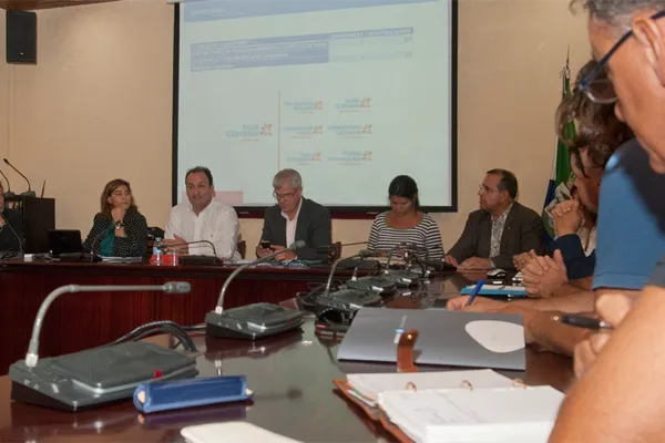 El viceconsejero de Turismo del Gobierno de Canarias, Ricardo Fernández de la Puente Armas, y lagerente de Promotur, María Méndez, se reunieron ayer con las instituciones y empresarios de la Isla de El Hierro para tratar diversos asuntos, como el resultado de la campaña ‘Vuelve a Brillar’ en la Isla y las acciones promocionales que se llevarán a cabo en los próximos meses, entre otros. A la reunión asistieron, entre otros, el presidente del Cabildo de El Hierro, Alpidio Armas, la consejera de Turismo de la institución insular, Verónica Montero, el alcalde de La Frontera, David León, el alcalde de El Pinar, Juan Miguel Padrón, y el de Valverde, Juan Manuel García, así como el diputado regional Javier Morales.